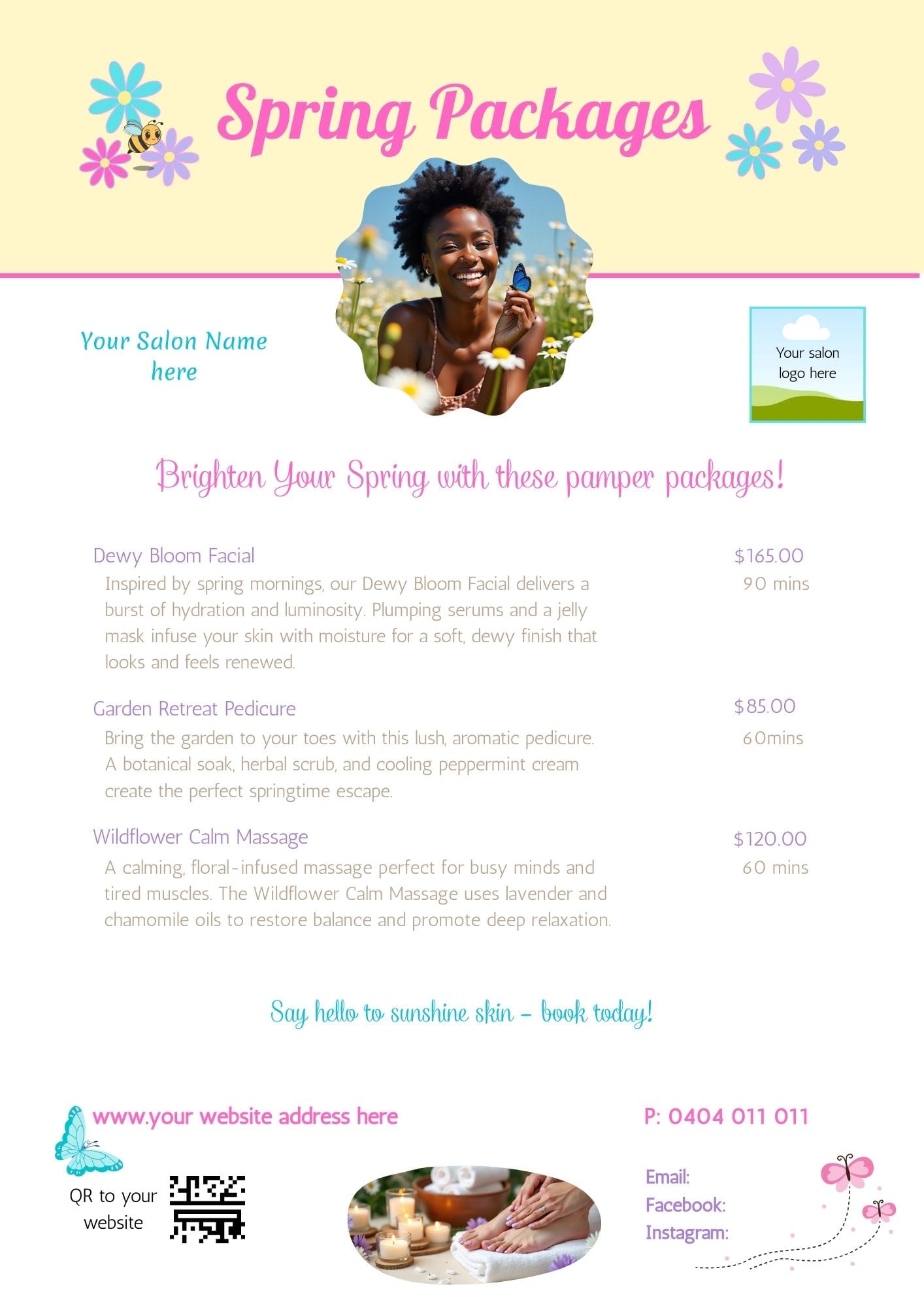1 x A4 Printable Canva Flyer – showcase spring treatment packages and promotions